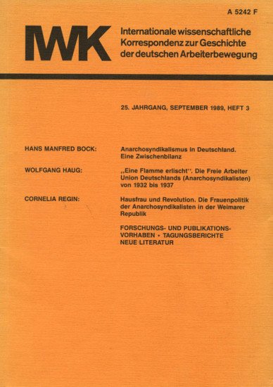 Enthält u.a. die Texte Hans Manfred Bock "Anarchosyndikalismus in Deutschland. Eine Zwischenbilanz", Wolfgang Haug: "Die Freie Arbeiter Union Deutschlands von 1932 bis 1937" und Cornelia Regin: "Hausfrau und Revolution. Die Frauenpolitik der Anarchosyndikalisten in der Weimarer Republik".