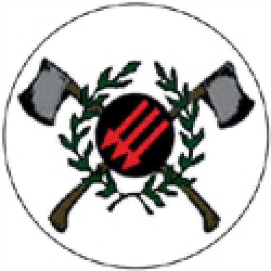 Schwarzweißer Button mit 25mm Durchmesser