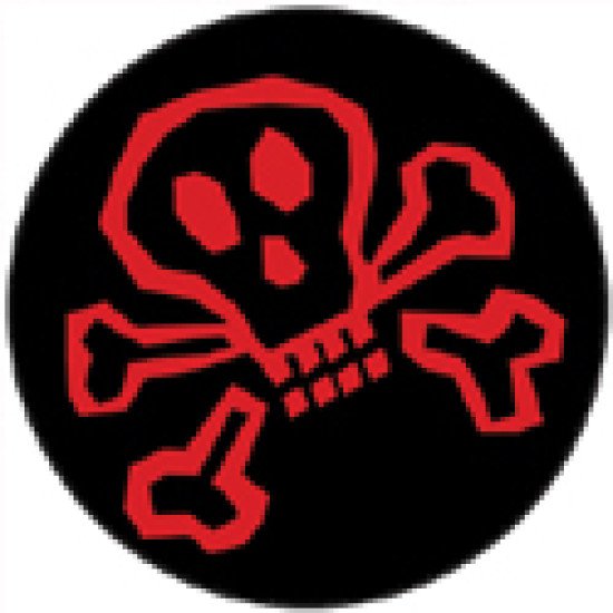 Schwarzweißer Button mit 25mm Durchmesser